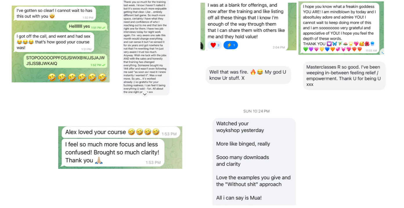 In the last 6 months, Iāve built a 6-figure brand selling everything from deep healing and embodiment work to high-level business strategy.